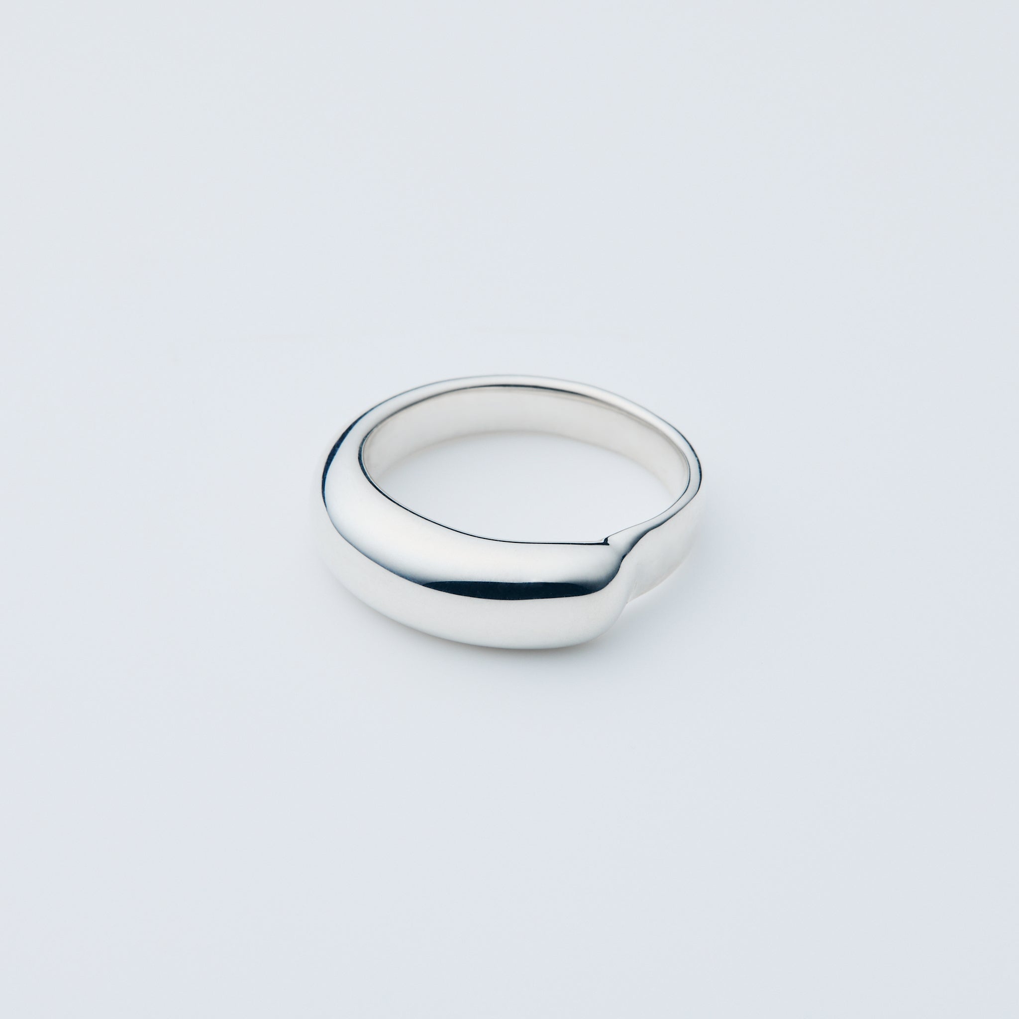 平らな面とふっくらとした曲線が織りなすささやかなコントラストから生まれる、“調和”の美しさを宿したリングです。