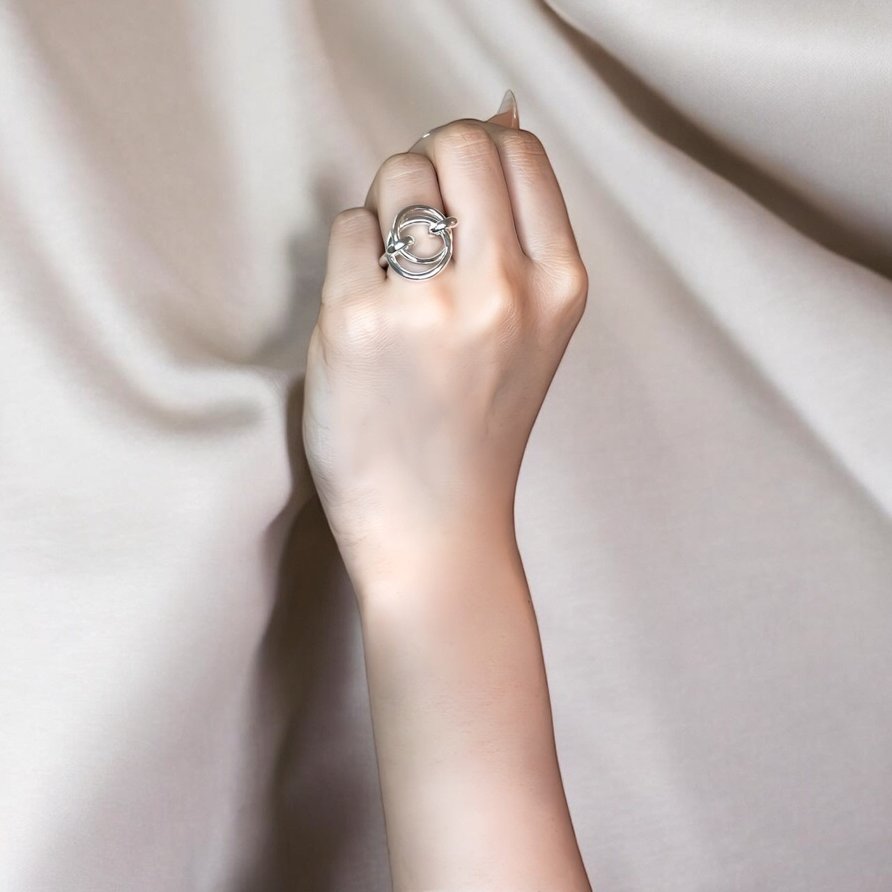 月が満ちては欠けるように、かたちを変えながら佇むリング。