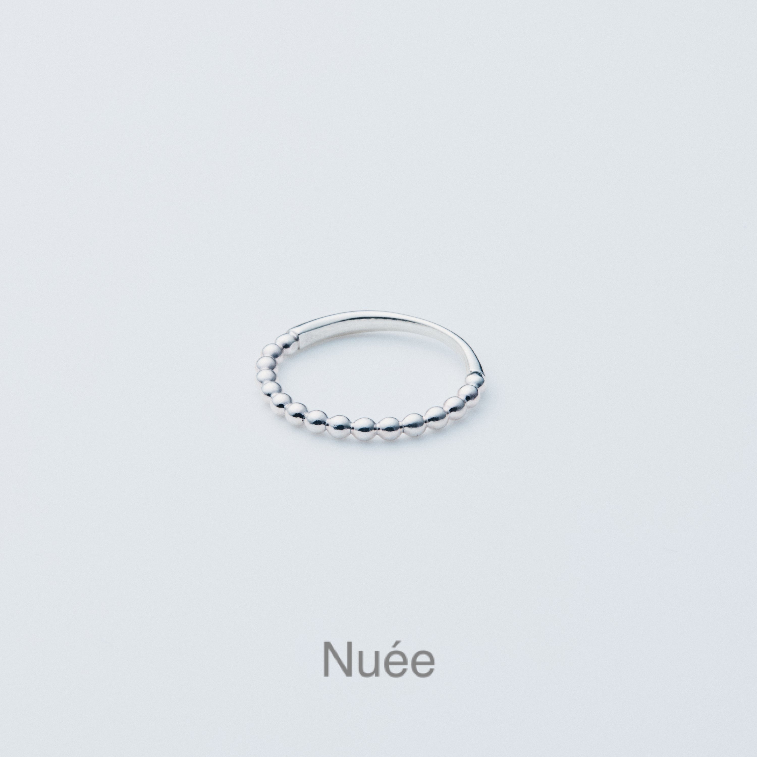 等間隔に並ぶ丸いフォルムの中に、リング全体にはわずかな強弱を持たせ、静かな中にも呼吸するようなリズムを感じさせます。
