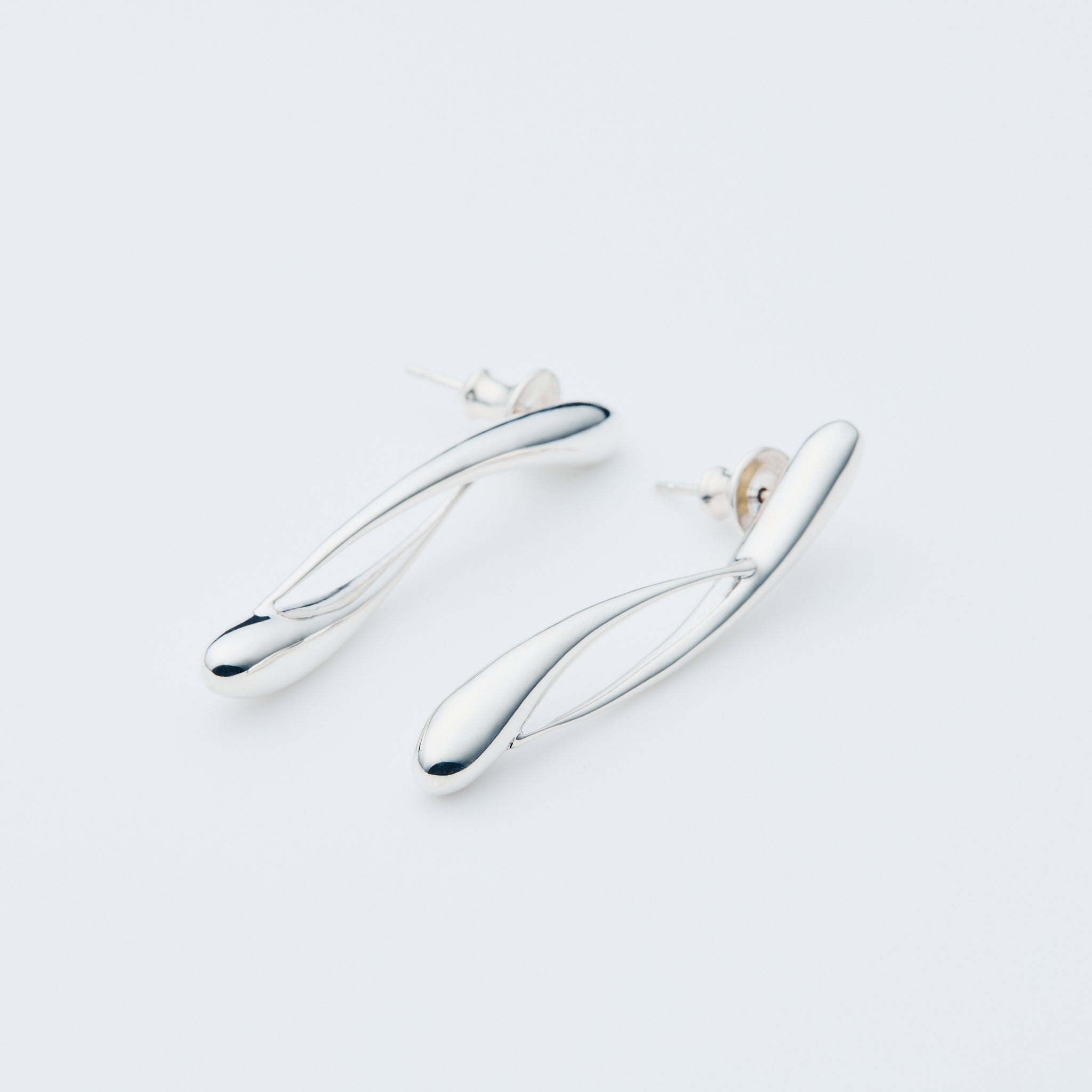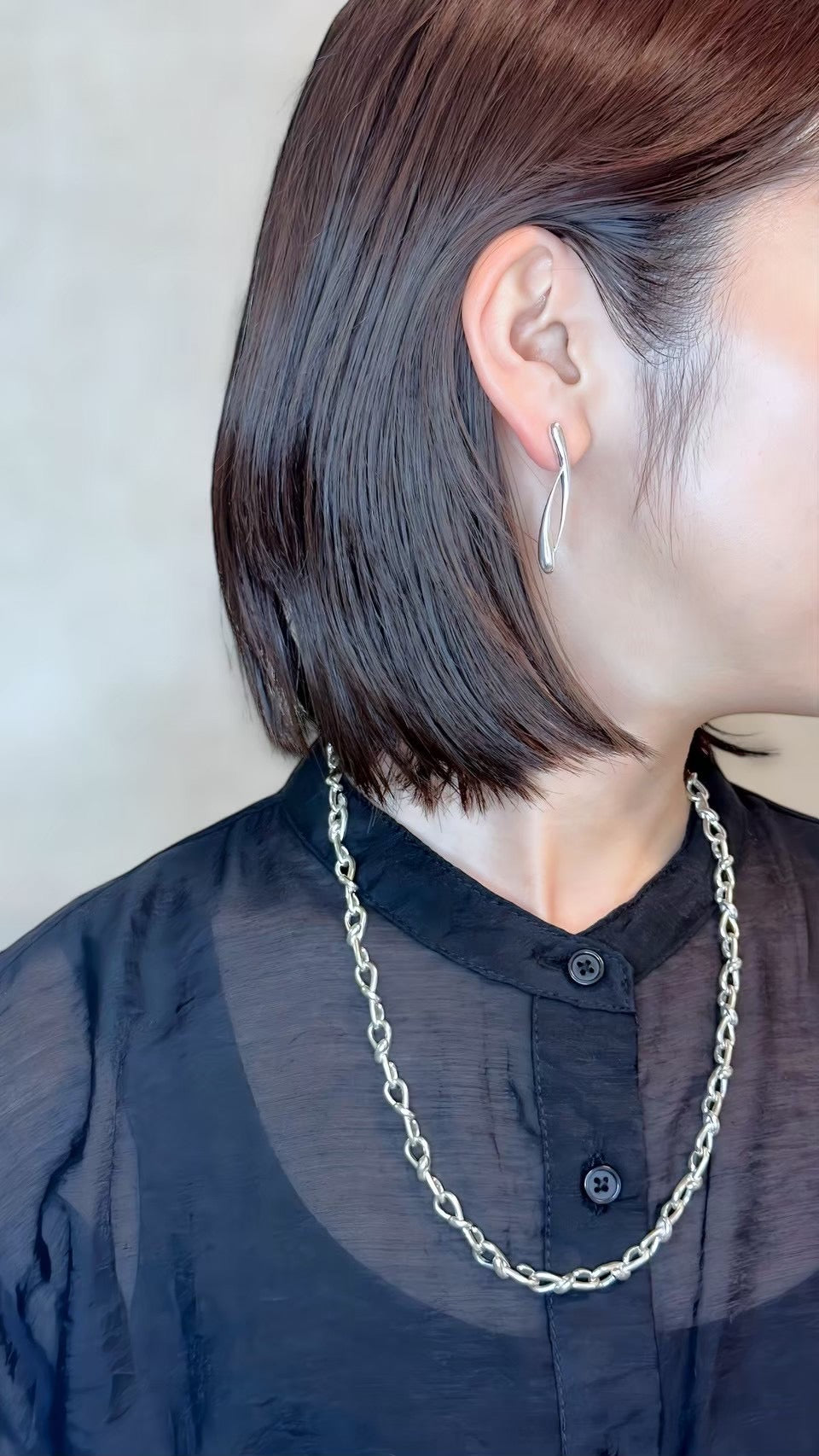 左右で対を成しながらも、まるで別々の道を選ぶようなふたつのピアス。