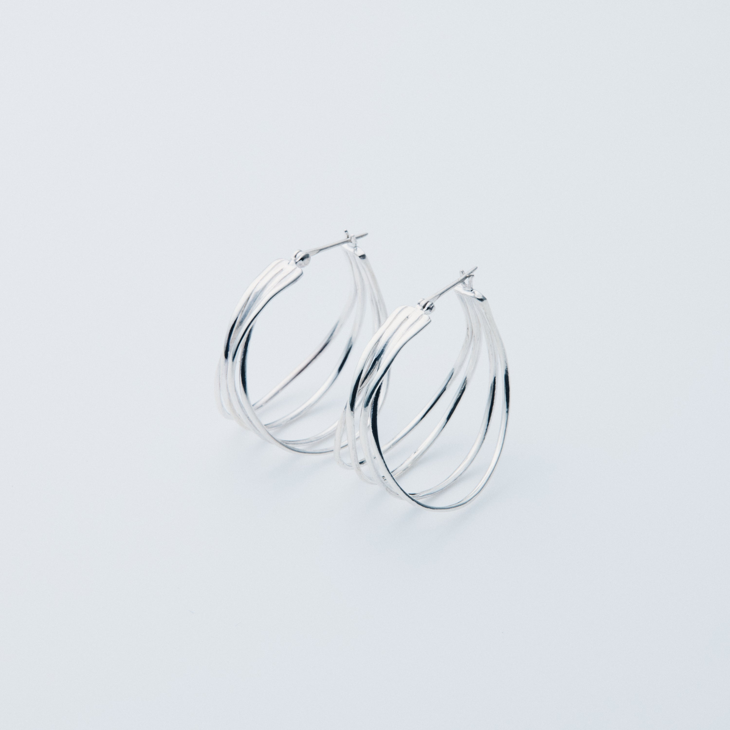 4本の繊細なラインが揺れながら重なり合い、空間とともに美しさを描くピアス。両耳セットで構成されるこのデザインは、大ぶりでありながら線の細さが絶妙な余白を生み、圧迫感なく、凛とした存在感を放ちます。