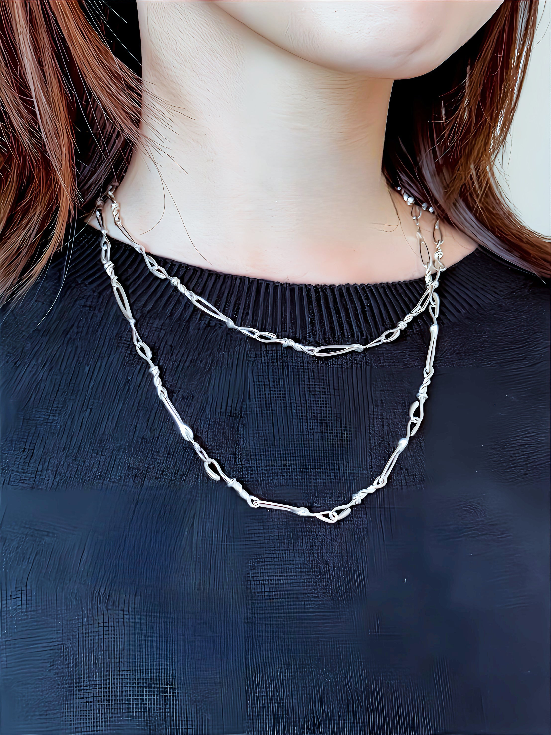 異なる2種類のパーツで構成された、全長88cmのロングネックレス。