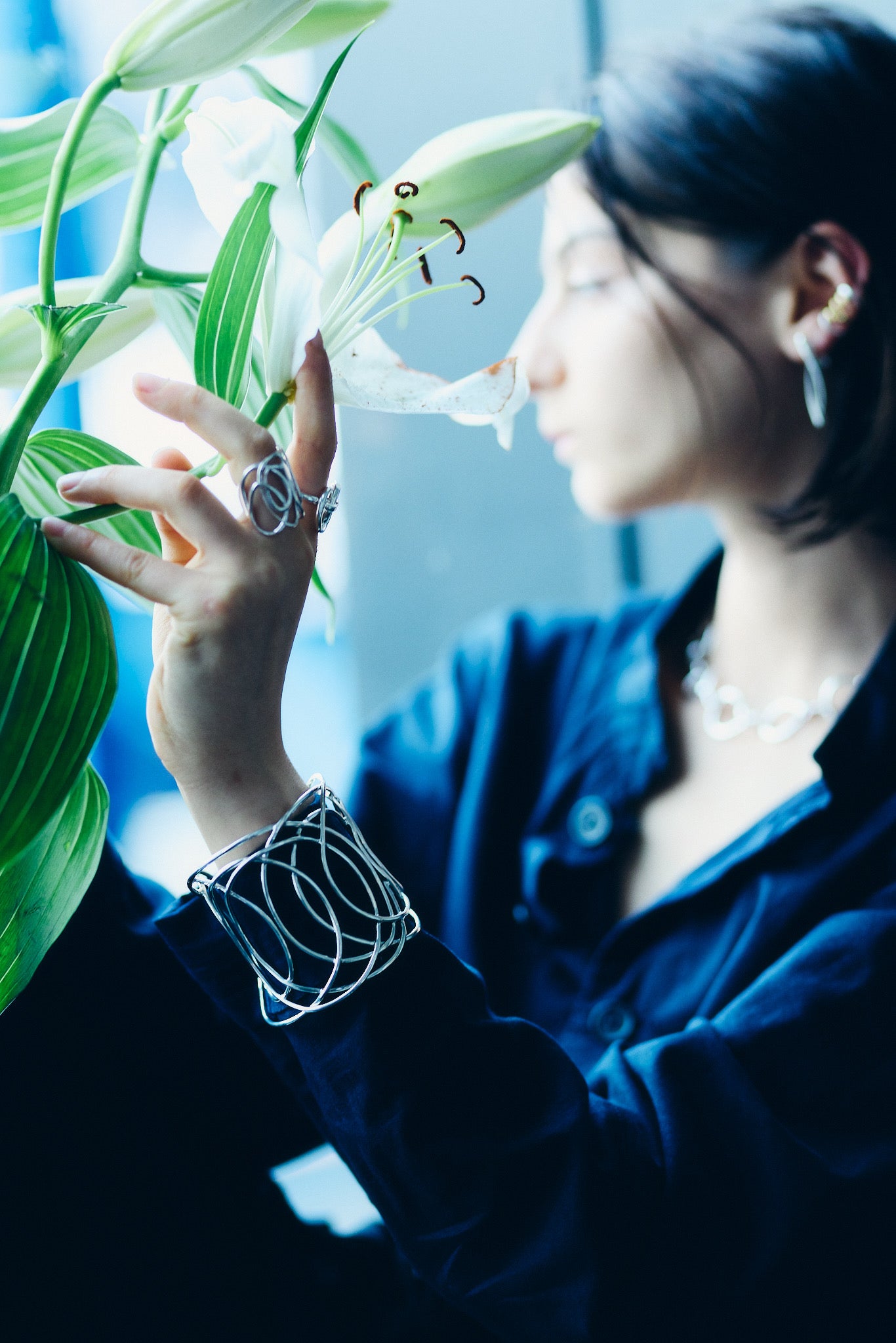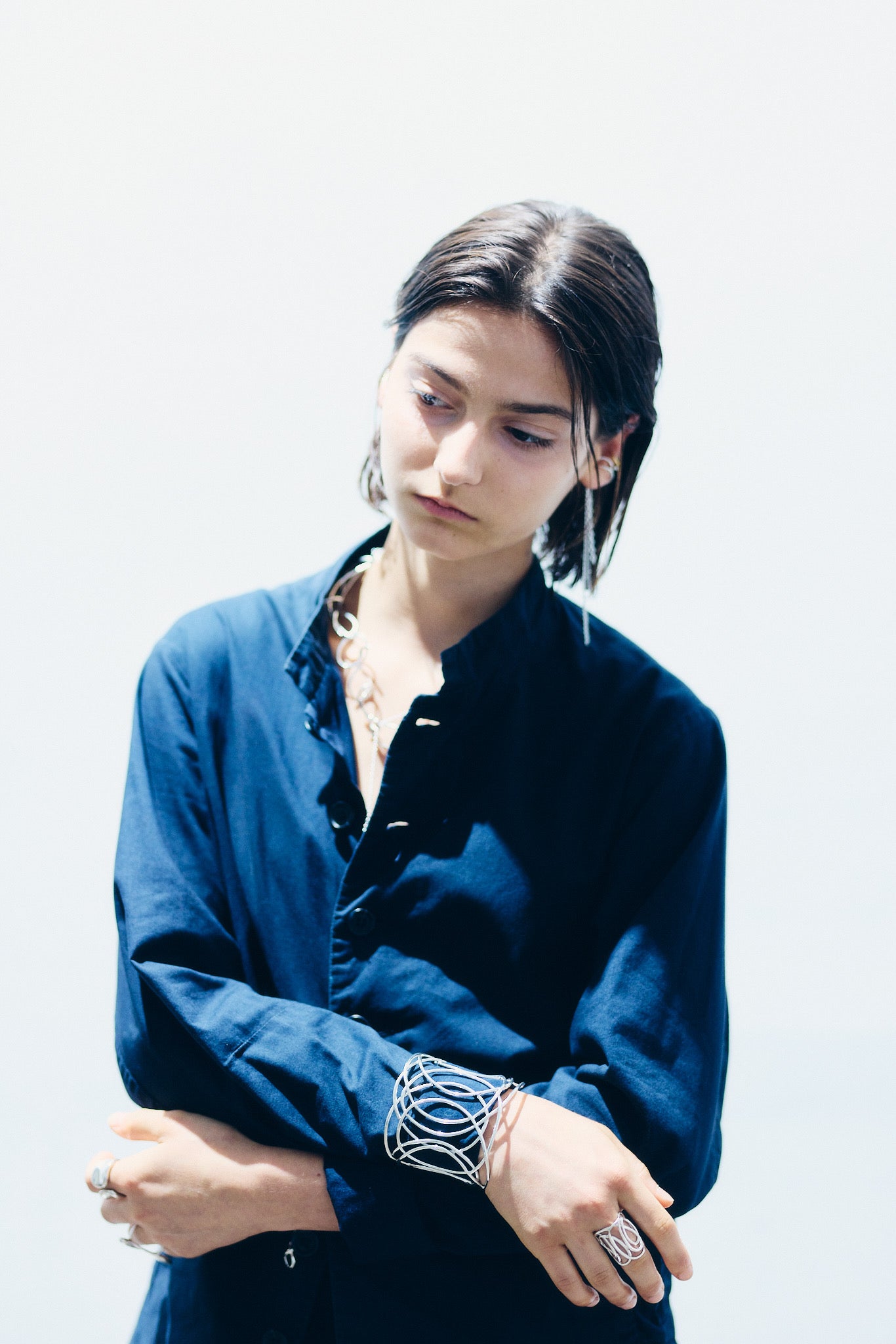 sillageの流れを受け継ぎながら、より構築的で穏やかな存在感を宿したミドルサイズのバングルです。