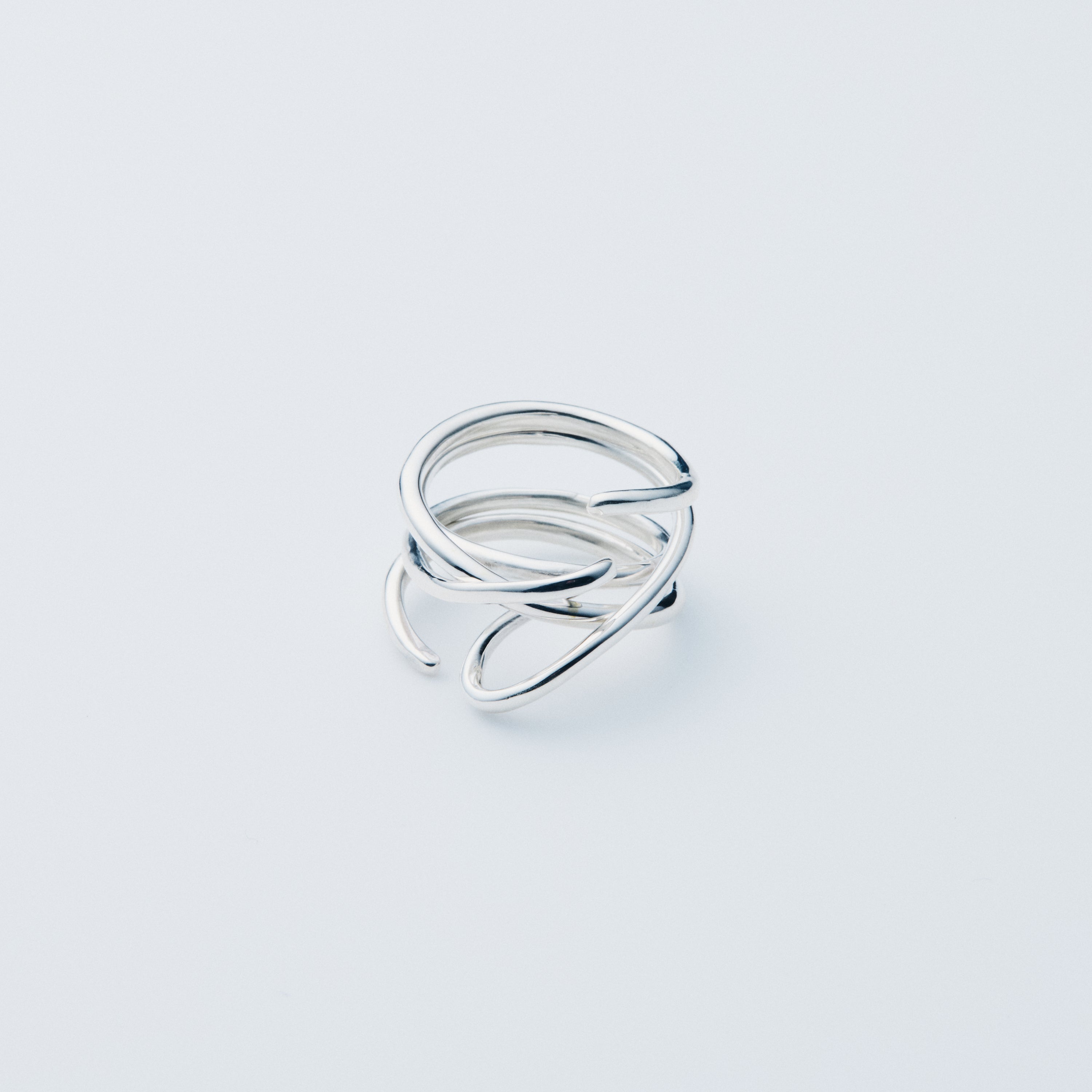 ふたつの異なるリズムをもつ線が、静かに寄り添いひとつになるリング。