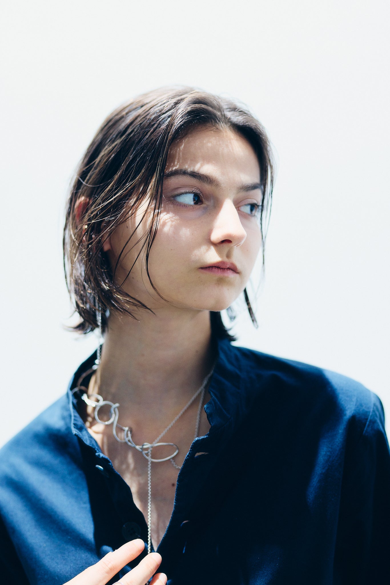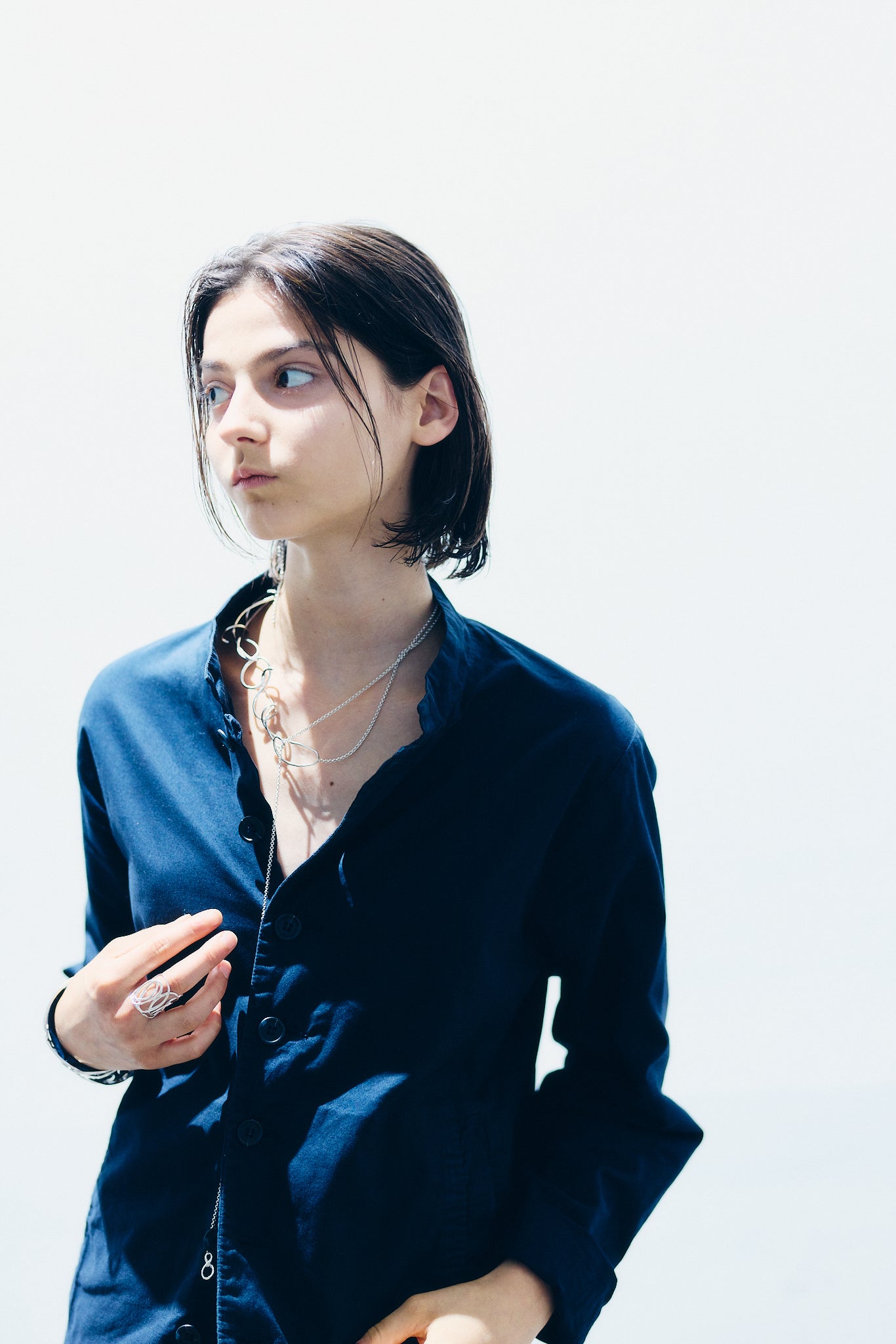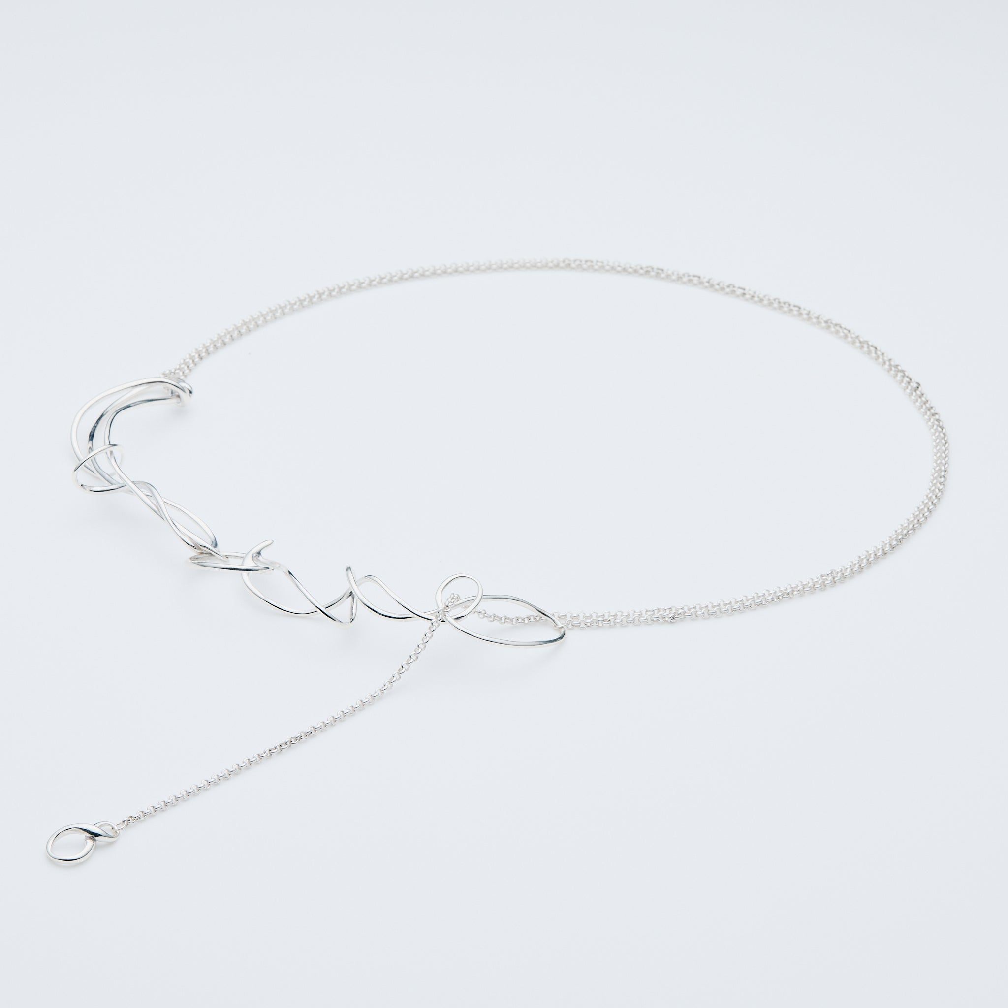 有機的なラインで構成された2つのパーツと、全長92cmのシルバーチェーン。