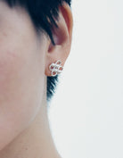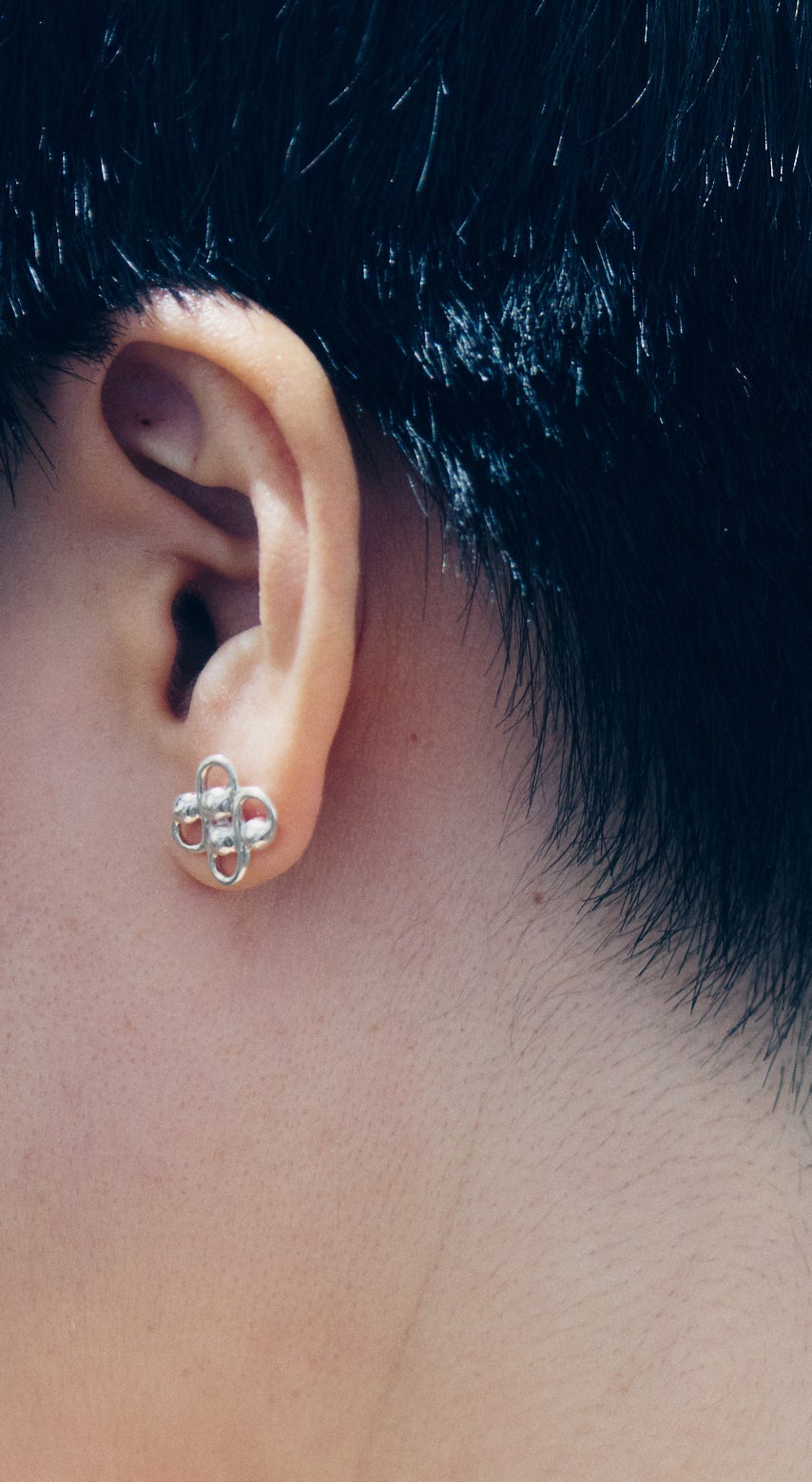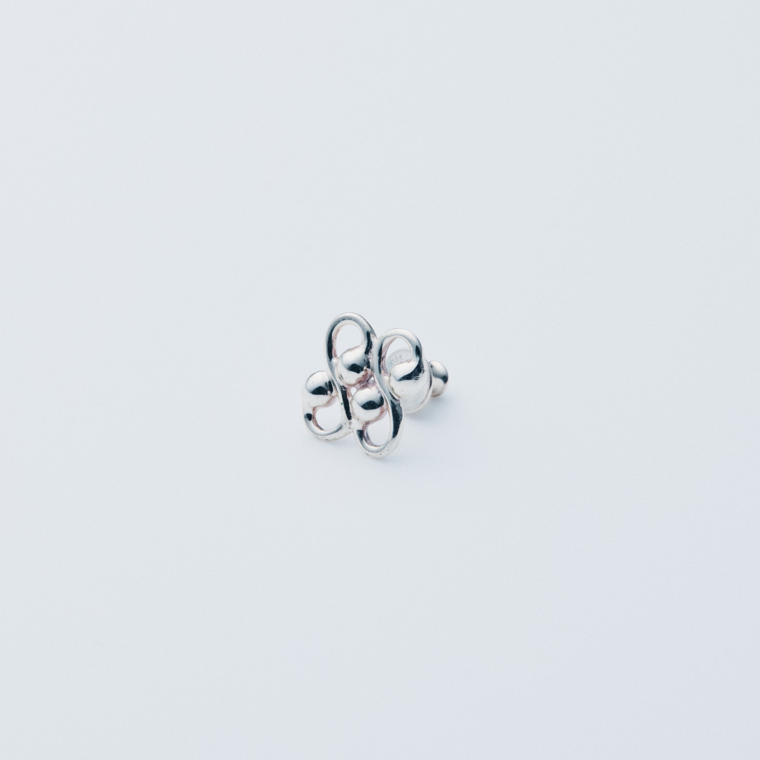 しなやかなS字の先に添えられた粒が、柔らかな重なりを生み、耳元に静かな構築美を描きます。